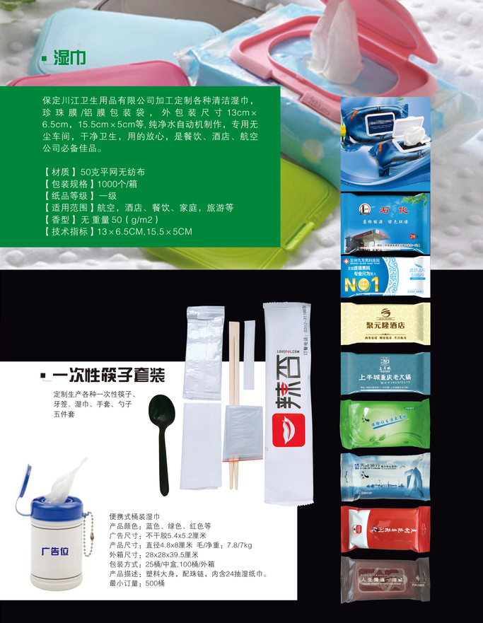 公司自1999年成立以來(lái),通過(guò)不斷完善,不斷更新,積累了豐富的紙巾制作經(jīng)驗(yàn)。更有專注精神,一如既往打造紙巾,濕巾。產(chǎn)品多元化,多渠道銷售。有益于禮品廣告商,公共衛(wèi)生服務(wù)商,酒店商務(wù)用紙、經(jīng)銷商、批發(fā)商,以及企事業(yè)單位采購(gòu)用紙。還特別為服務(wù)行業(yè)配套用紙?zhí)峁┒喾轿坏倪x擇。